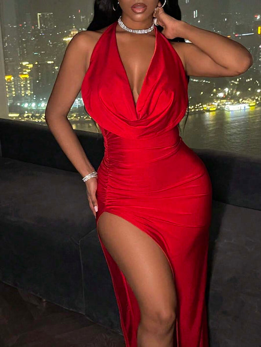 Scarlet Drape Slit Gown