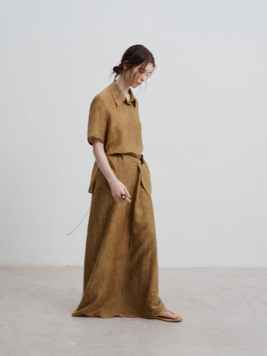 Signature Strip Textured Chocolate Print Baggy Pants-Set