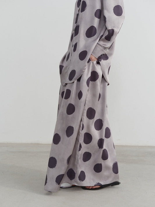 Unique Print Elastic Waist Pocketed Wide Leg Pants-Set