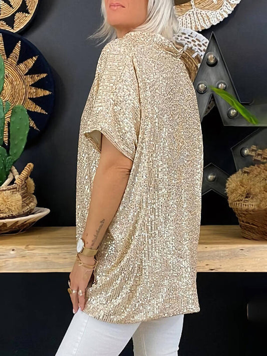 Bohemian Casual Loose Pullover Short Sleeve Sequin V-Neck Top