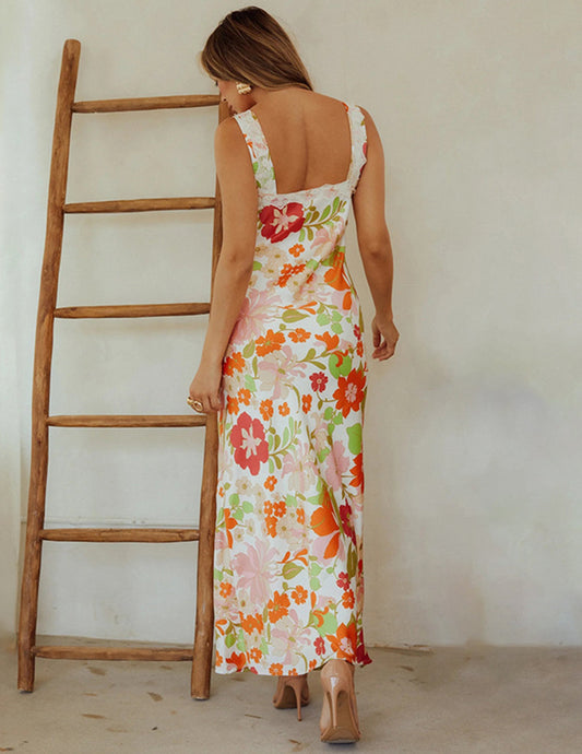 Vacation Beach V-Neck Floral Print Maxi Dress