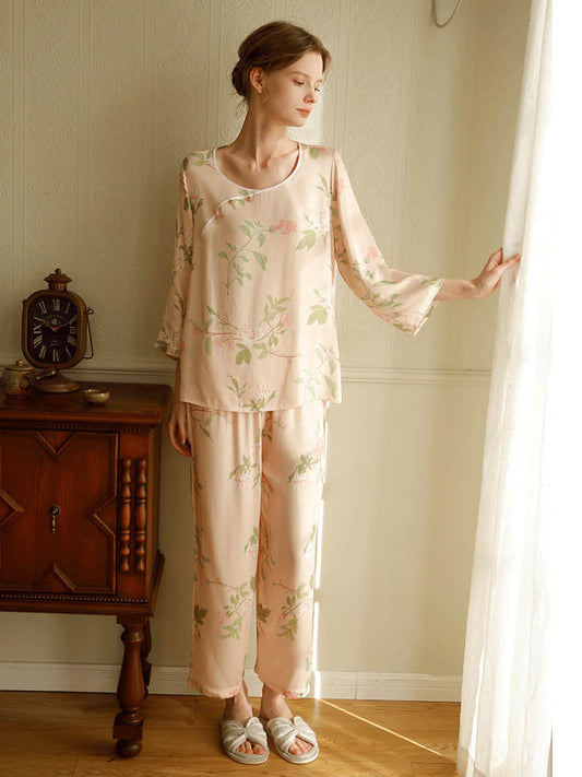 Loose Striped Patchwork Long-Sleeved Shorts Pajama Set