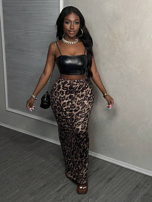 Leopard Curve Split Skirt