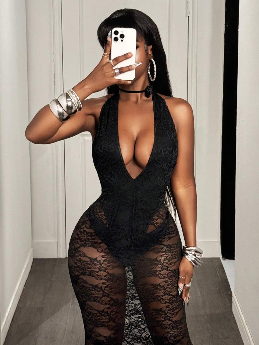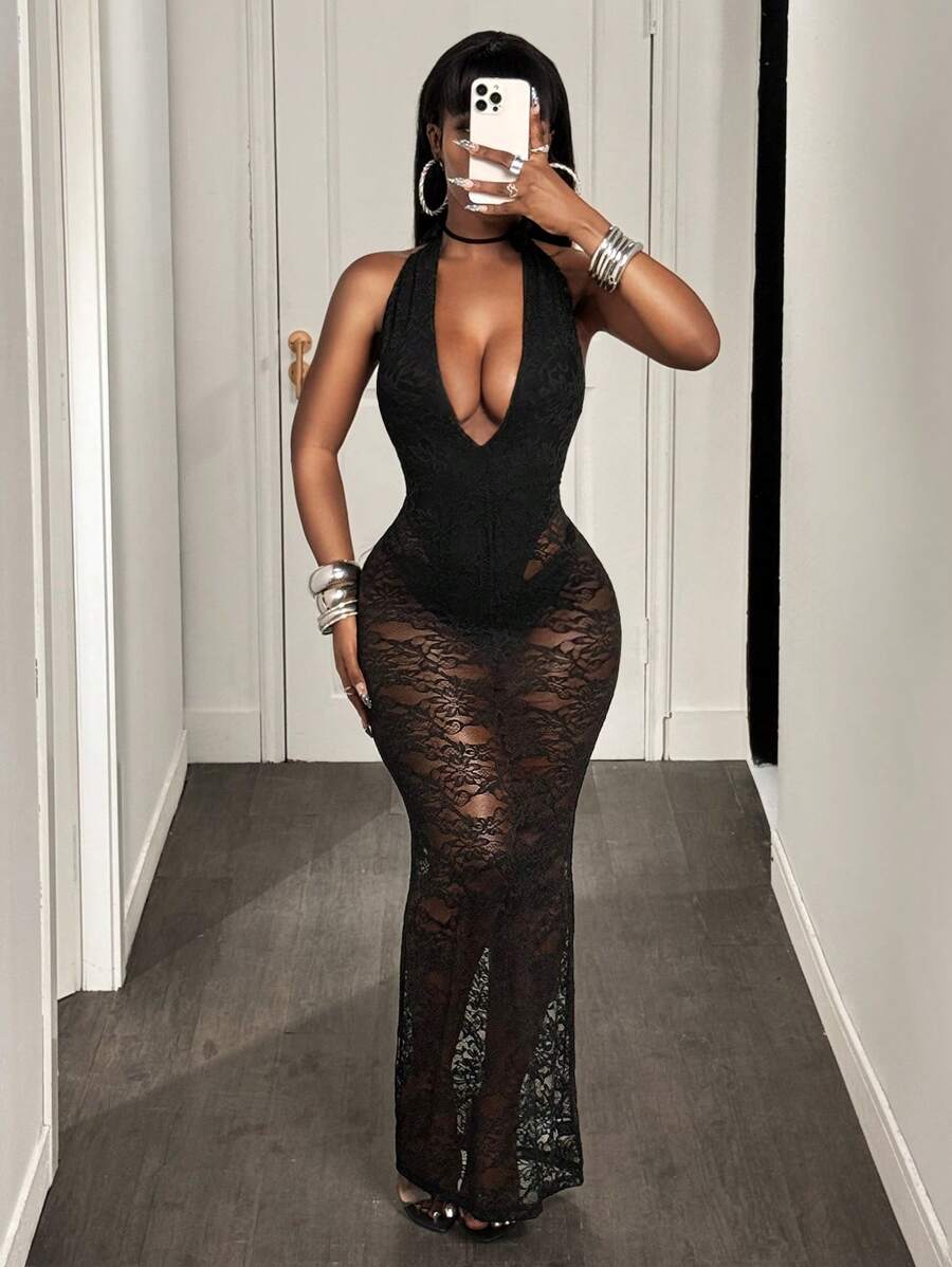 Burgundy Lace Siren Gown