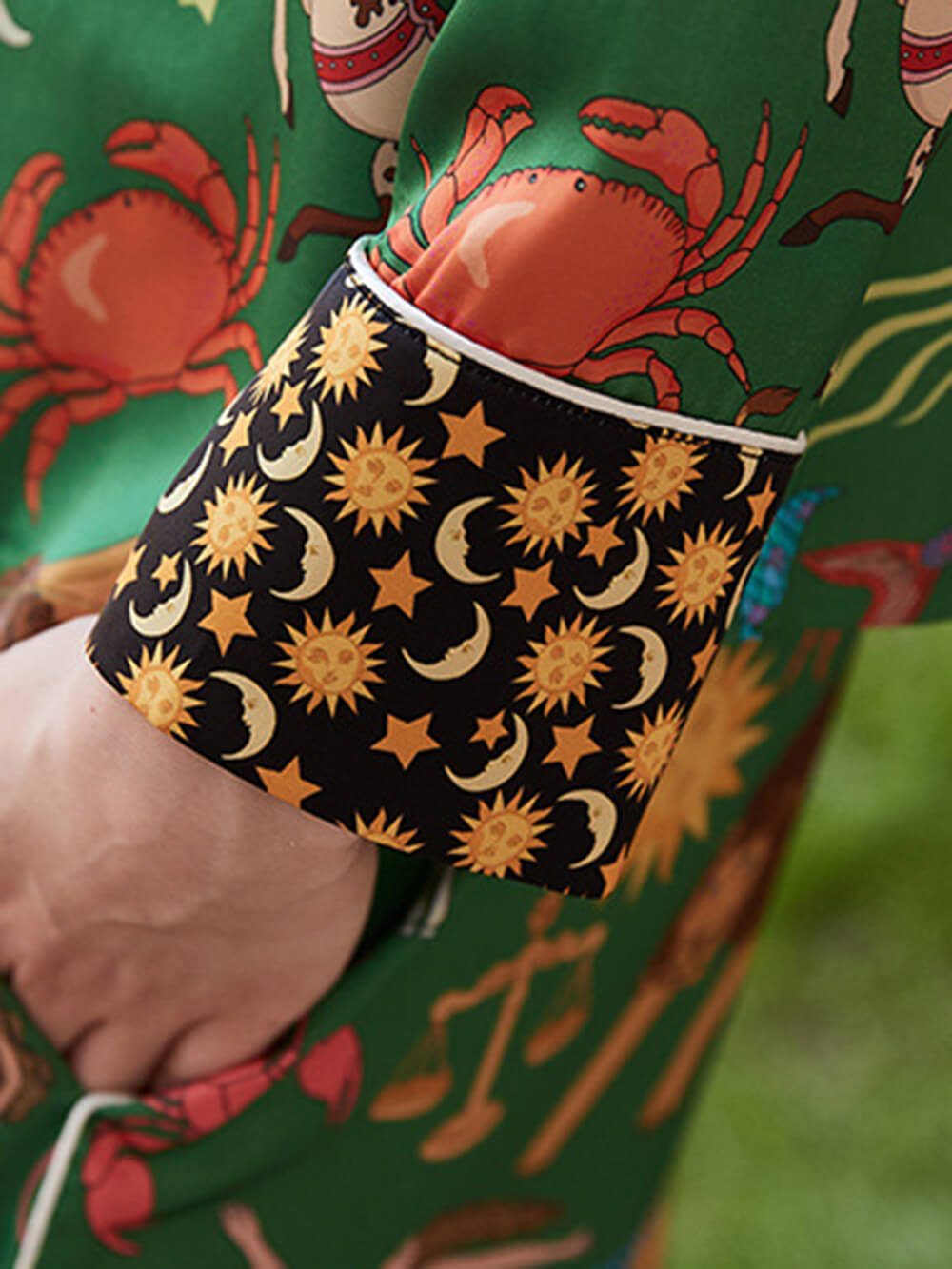 Morning Glory and Lily Pattern Cardigan Long Sleeve Pajama Set